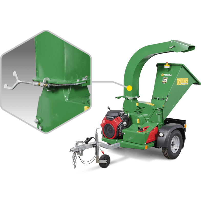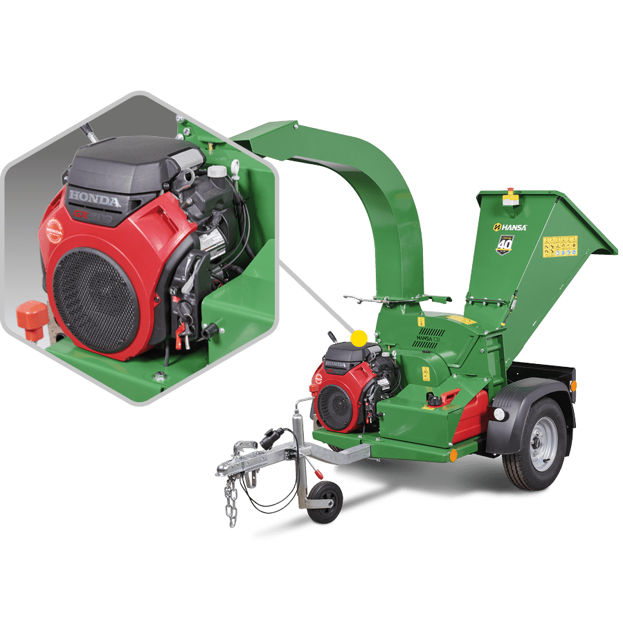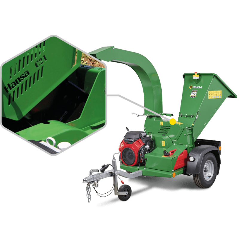 The largest of the Hansa gravity self-feeding options, this world class chipper boasts an extremely heavy duty cutting disc with a chipping capacity of 130 mm in diameter enabling it to handle the rigorous needs of the most demanding operator. The electric start V-twin engine makes starting a breeze and its inlet chute is specifically shaped to assist feeding of heavier branches and bushy foliage.